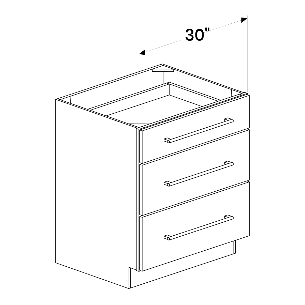 White Shaker 3 Draw Base 30" Wide
